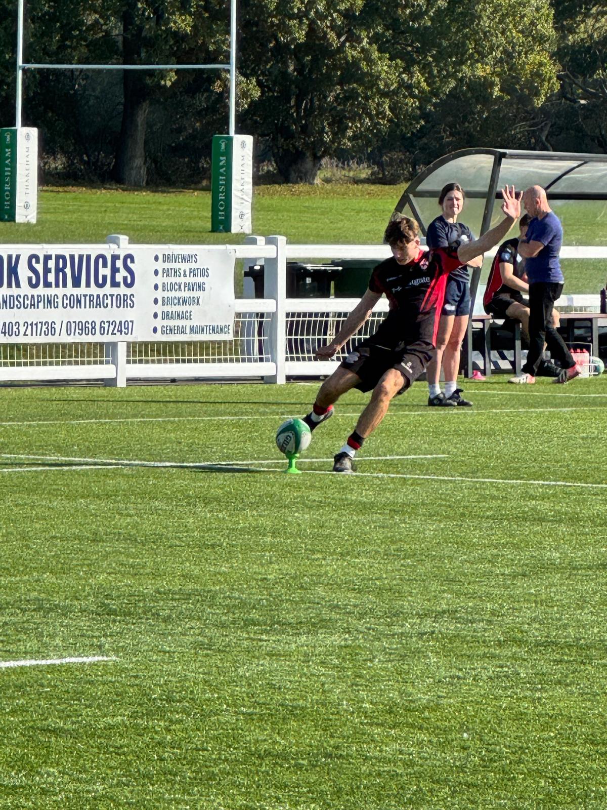 Chased by right wing Joe Griffiths, the Horsham back 3 failed to deal with it and the loose ball was pounced on by try scorer Jenson Russell diving in the ball in goal.