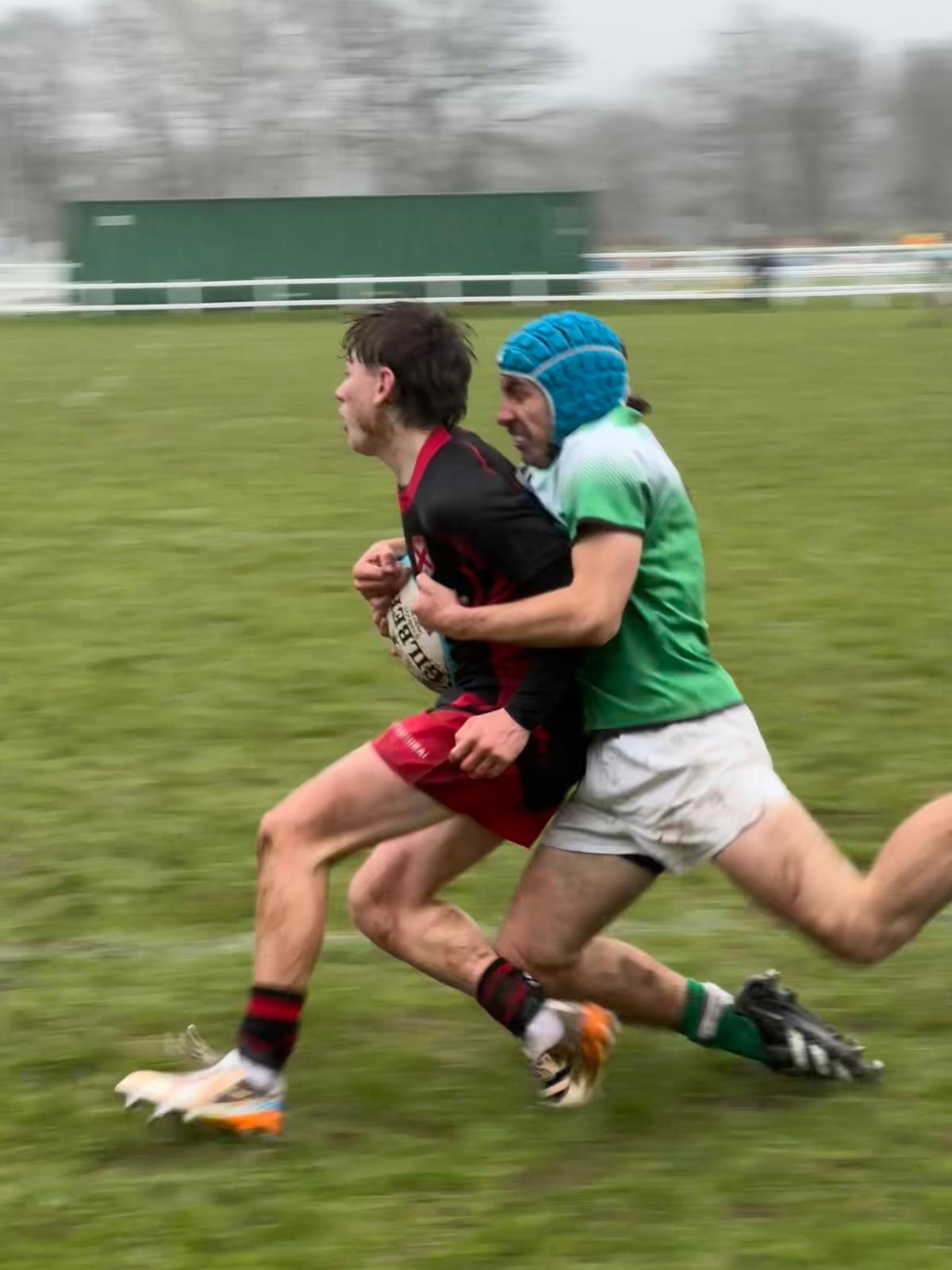 A challenging day to play rugby was very evident in the first 40 with mistakes from both teams. Neither side could get going despite best efforts in attack. Jersey spent a lot of time camped on their try line and managed to exit well via the boot of Lyle Pritchard. Both teams showed desire in defence to keep the scores 0-0 at half time.